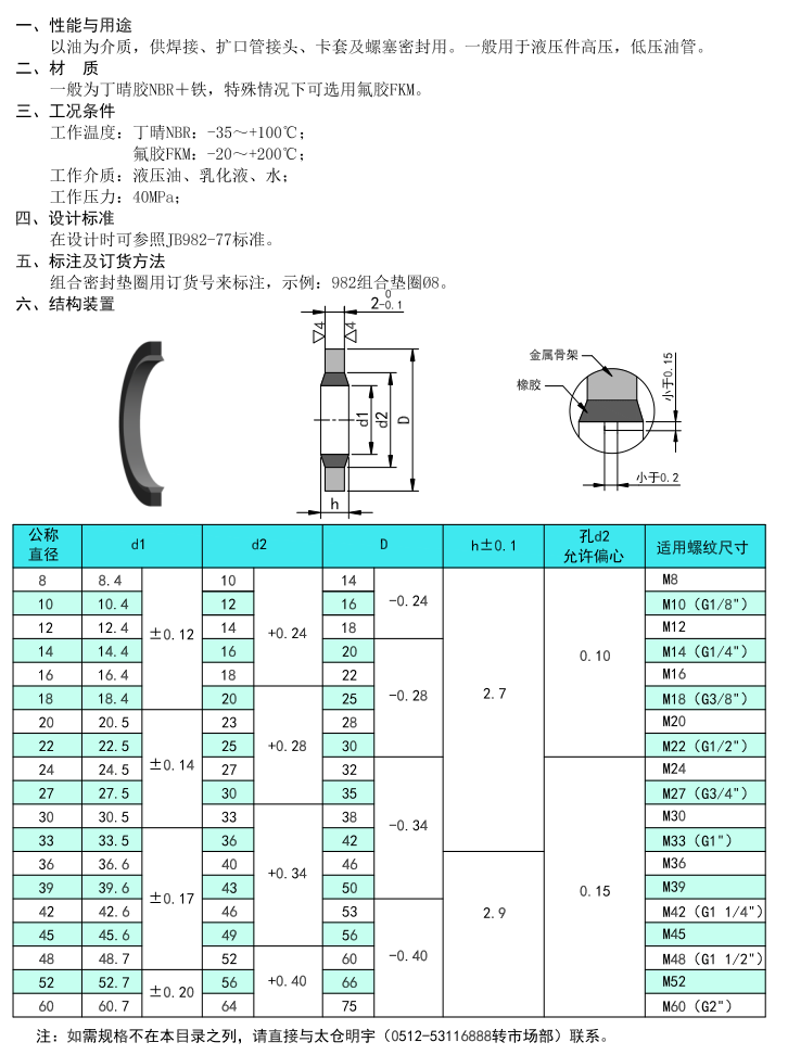 組合密封墊圈以油未介質(zhì),供焊接,擴口管接頭、卡套及螺塞密封用,一般用于液壓件高壓,低壓油管,也屬于